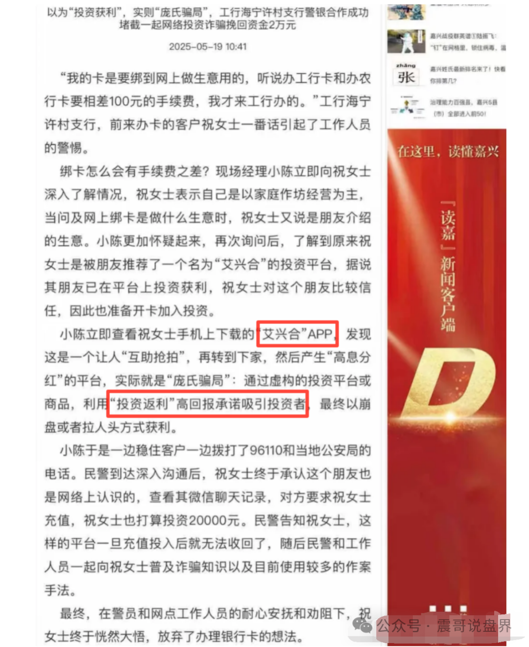 最近好多粉丝跟震哥反映,艾兴合提现开始卡壳了,连浙江电视台都点名了。这不就跟当年那个卷走上百亿,坑了180万人的鑫慷嘉一个套路吗?震哥今天就给你们掰扯掰扯这俩项目有哪些共同点。...