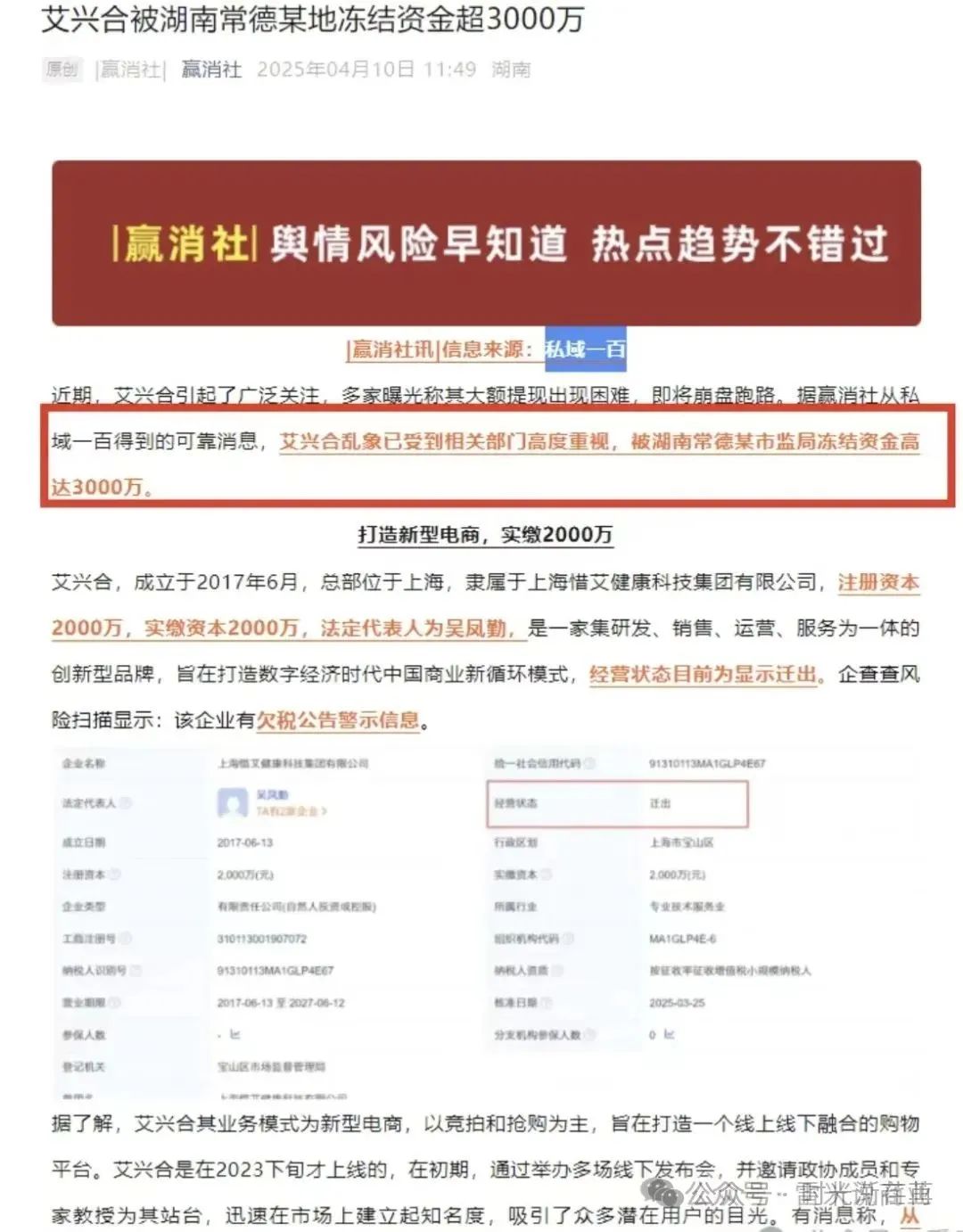 其实早在 2024 年 3 月,由沿江派出所提供消息、政府单位运营的公众号 “沿江 E 家亲” 就已经发布针对艾兴合的预警了。