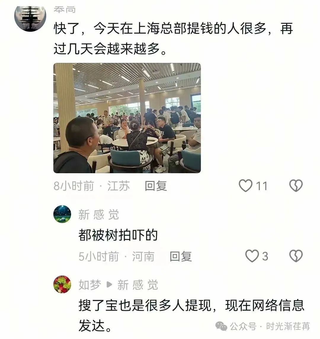 这一下,可把用户们吓得不轻,瞬间炸开了锅,大量用户发现自己提现困难。江苏有个用户申请提现 31500 元,眼巴巴等了 5 天,钱愣是没到账,找客服问情况,客服就拿银行系统问题来忽悠人。