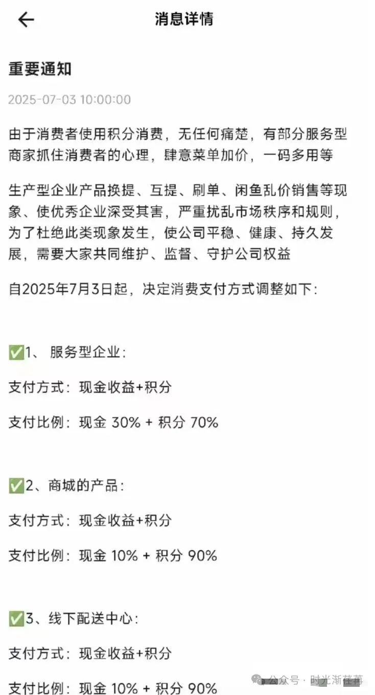 但时间一长,艾兴合平台的各种毛病就藏不住了。2025 年 7 月,平台跟变了个人似的,突然调整规则,把大额提现审核周期从 T+1 硬生生拉长到 T+5,还把 50% 的收益强制变成消费积分,关键是这些积分只能兑换平台上那些价格贵得离谱、质量还让人不放心的 “三无产品”。