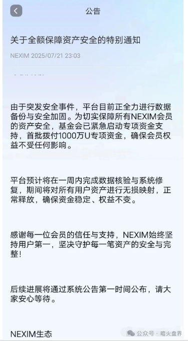 在2025 年 3 月,一个名为 NEXIM 全球支付的平台低调登场。它以迪拜金融巨头与区块链跨境支付为幌子,向投资者承诺“日息 3.5%,100 天本金翻 6.5 倍”的超高收益,在东南亚地区疯狂地对投资者进行...
