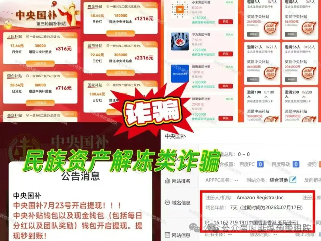中央国补APP是彻头彻尾的诈骗陷阱。它冒充国家机关,以高额中央补贴为诱饵,诱导用户实名注册并绑定银行卡,还推出虚假投资理财产品及分佣机制。此APP只能通过第三方渠道下载,未备案且IP在境外。所谓免费提现秒到、绑定送钱等承诺根本不可信。骗子获取用户信息已能获利,后续或推理财骗钱。远离此类骗局。