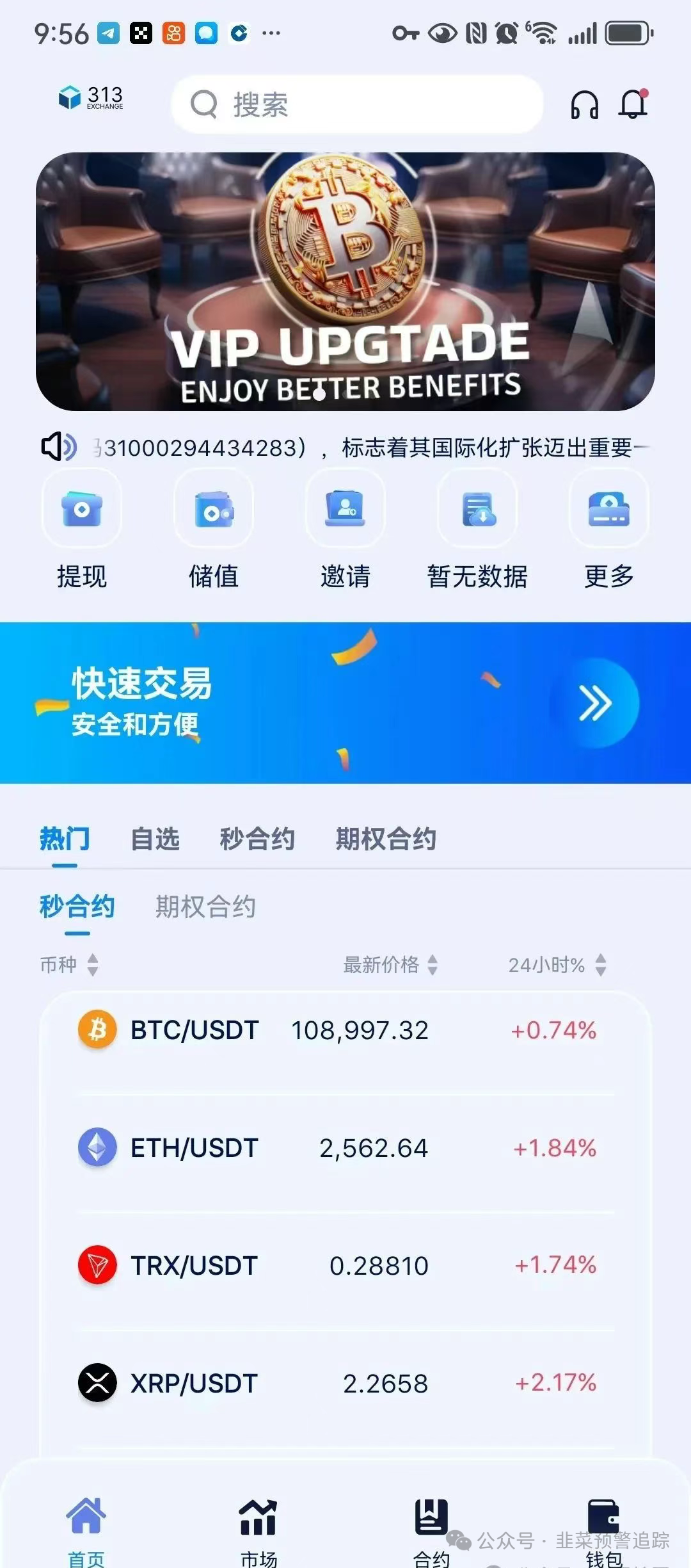 313交易所是诈骗资金盘,模仿鑫慷嘉。它并非真正的交易所,只能玩合约且声称稳赚不赔,盈亏全由项目方掌控,就像单机游戏。项目方限制入金800U,实则是为锁住资金。轮回认为该盘生命周期超不过三个月,后续开放额度易引发提现挤兑。奉劝参与者抓紧提现,莫等崩盘后悔。