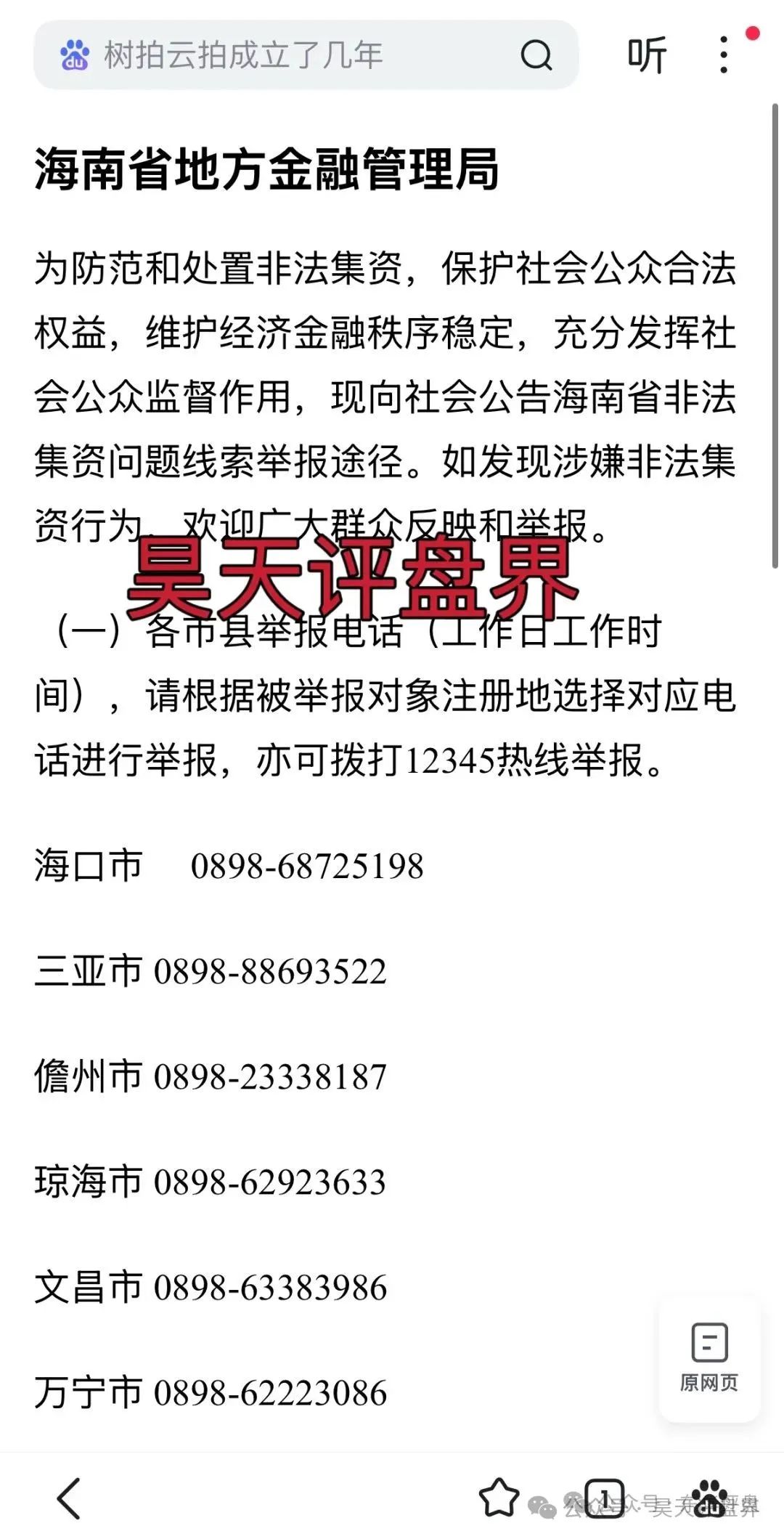 模式就不发了u进u出的资金盘骗局,前几天受害者联系昊天爆料昊天发了下面这些图,然后就有被洗脑的韭菜问他们怎么不去海南公司维权,今天昊天就告诉你为什么,因为受害者已经联系过海南管理非法集资的政府单位了,那边也已经派人去现场看了根本没人...
