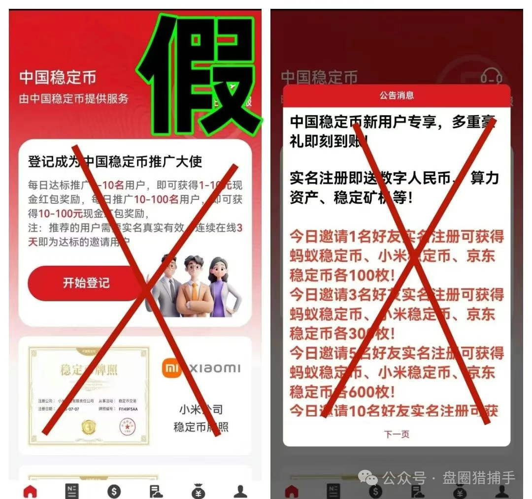 中国稳定币APP冒充小米公司项目,实为非法诈骗APP。APP诱导用户注册“推广大使”,通过拉人头获奖励,宣称“实名认证”可得蚂蚁、小米、京东稳定币,均为虚假宣传。项目宣称8月1日运行,实则诈骗陷阱。建议立即卸载APP,远离此类项目,勿信高收益诱惑,及时报警止损!