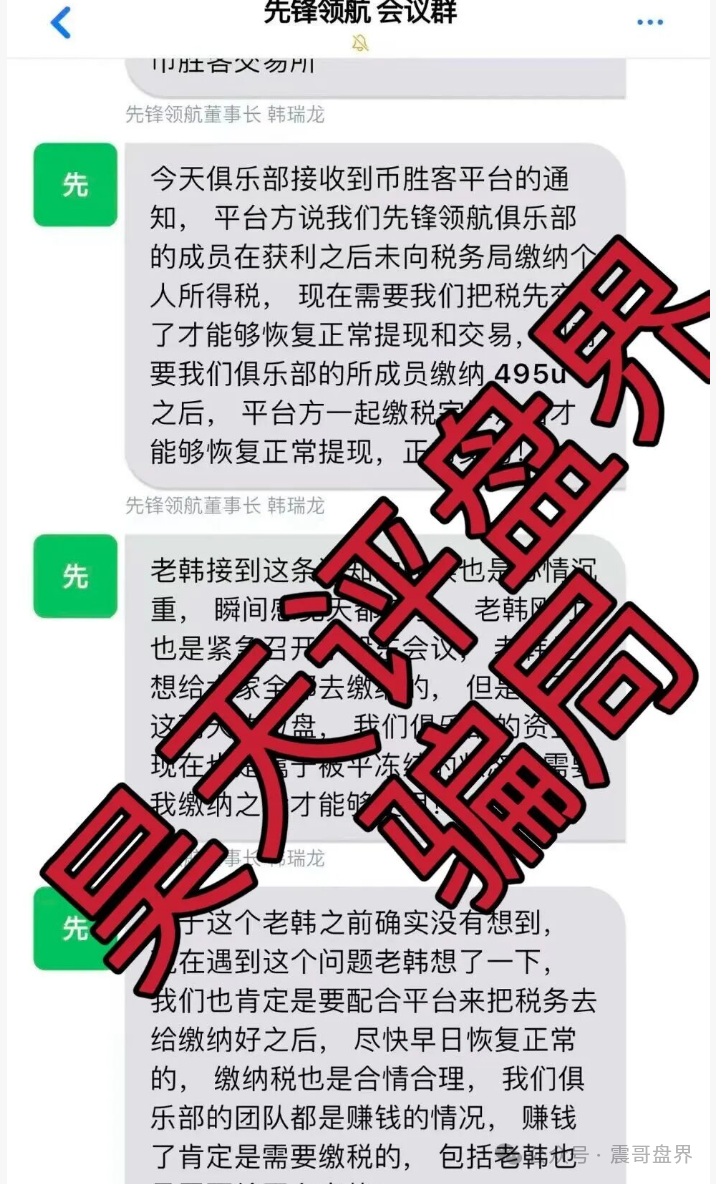 有受害者爆料,币胜客跑路前还发了个离谱公告,说什么“会员得先充495U补税才能提现”,逾期就冻结账户。明眼人一看就知道是套路——真崩盘了还收个毛线税?摆明了就是榨干最后一滴血!