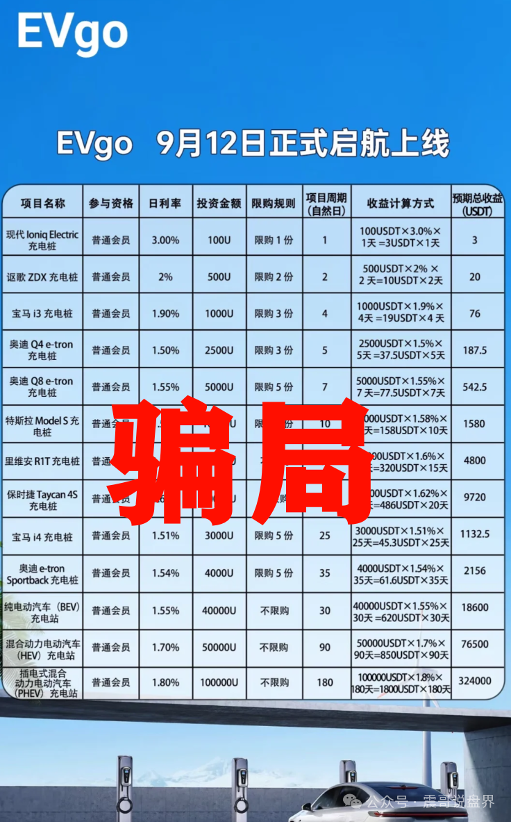 震哥今天必须跟大伙儿唠唠这个新冒出来的"EVgo"充电桩骗局。这玩意儿跟之前曝光的昆仑智脑、云启资本那些套路简直是一个模子刻出来的,连包装都懒得换。