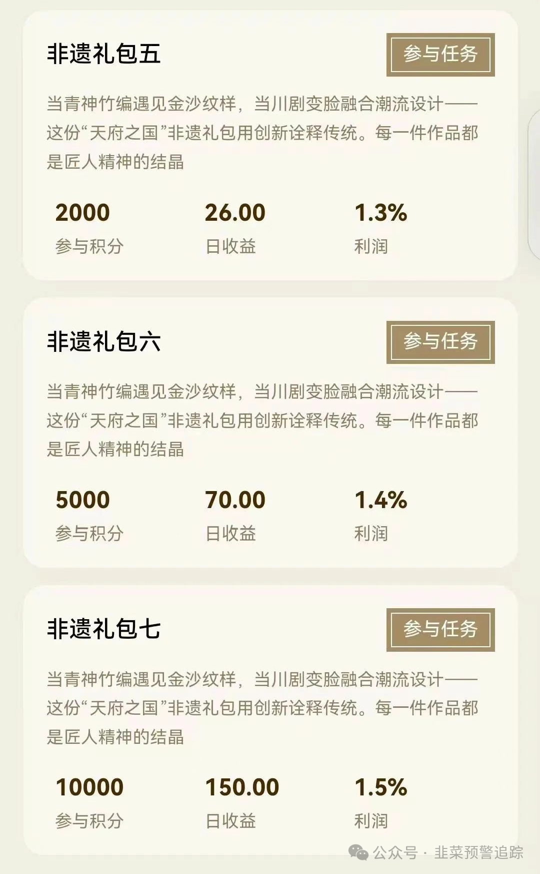 唯遗是疑似“优酷优选”团伙所开资金盘,已运营2月多。它推出不同价位礼包,用户购礼包获积分做任务享收益,拉新还有奖励,是典型传销套路。其积分无实际价值,靠新资金维持。现大团队撤离,即将崩盘跑路,大家切勿参与,避免血本无归。