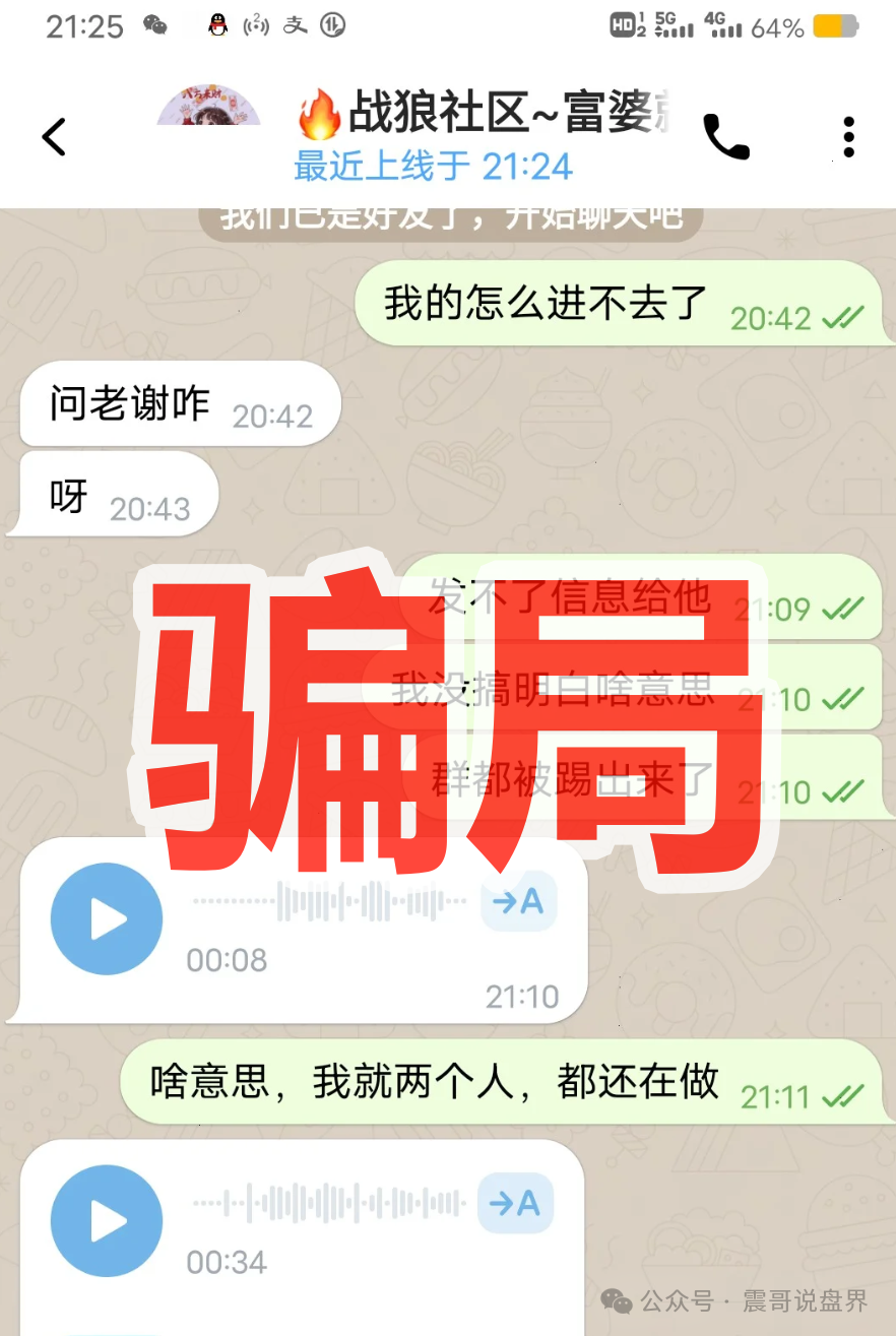 老铁们记住了,震哥从来不做项目推广!网上那些冒充震哥的都是骗子!这种刚开盘就割韭菜的盘子,百分百是杀猪盘!赶紧撤,别等血本无归才后悔!