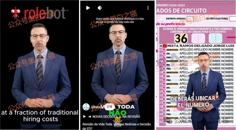 跑一圈下来自动就识别出来,这位头像在全球很多产品广告宣传中出现,不管是英语还是西班牙语,甚至葡萄牙语,全是这种人工智能嘴型,已经是网红脸型。